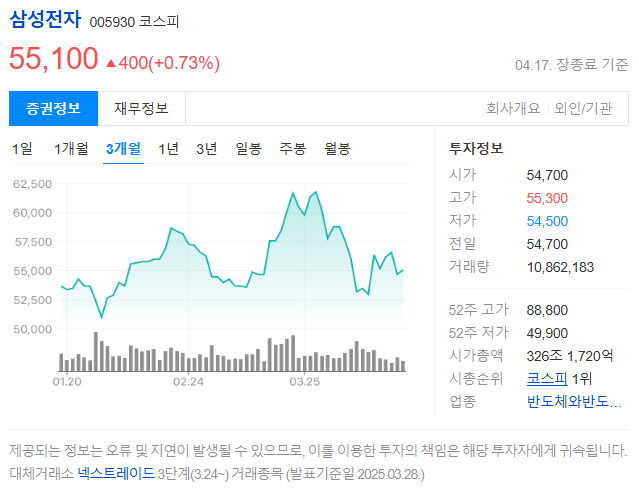 현재 삼성전자 주가는 **5만 원대 초중반(약 54,700원)**에서 횡보 중입니다.